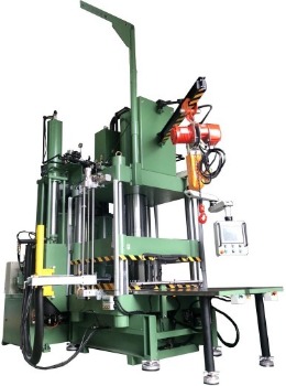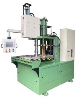 使用上座板、壓模板、下座板搭配立柱組合,壓模板垂直上下移動對模具加壓。適用手推模具或自動模具。因結構穩定特別適合大噸數設備使用。模具進出壓模空間時,模具尺寸會受立柱間距限制,需特別注意